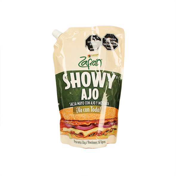 “La Salsa Showy Ajo Zafrán combina la suavidad de una crema delicada con el sabor característico del ajo, ideal para realzar carnes, parrillas y recetas gourmet. Su equilibrio de sabores permite que cada plato se transforme en una experiencia culinaria sofisticada y llena de aroma, perfecta para chefs y amantes de la buena cocina.”